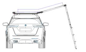 Grazie alla sua estensione permette di utilizzare CampUp sulla maggior parte delle autovetture (altezza max auto + barre portatutto = 205 cm) creando una comoda leva per rendere l’apertura del piano alla portata di tutti.